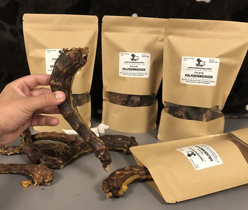 Wir kaufen Truthahnhälse direkt von der Trocknerei. Auf diese Weise haben wir nicht nur ein einzigartiges Produkt, sondern du kannst zu 100% sicher sein, dass du ein frisches Produkt kaufst, das zweimal auf Qualität geprüft wurde. Wir haben jeden getrockneten Truthahnhals noch mal in der Hand und wir verpacken nur das Beste sorgfältig.