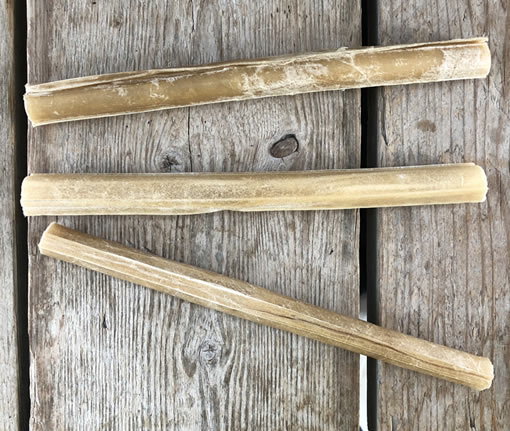 Wir lassen die Kaustangen aus Rinderhaut-Stücken bester Qualität fertigen. Diese werden unter Aufsicht hergestellt und getrocknet, damit du einen sicheren Kaustick erhältst.