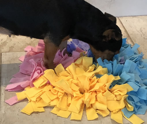 3. Hunde, die schlecht fressen, wollen oft wohl fressen, wenn sie wirklich etwas dafür tun müssen. Ein Schnüffelteppich ist ein wirklich tolles Werkzeug.